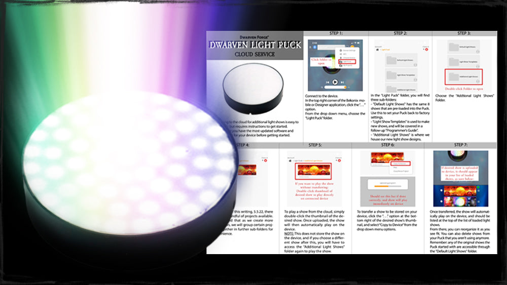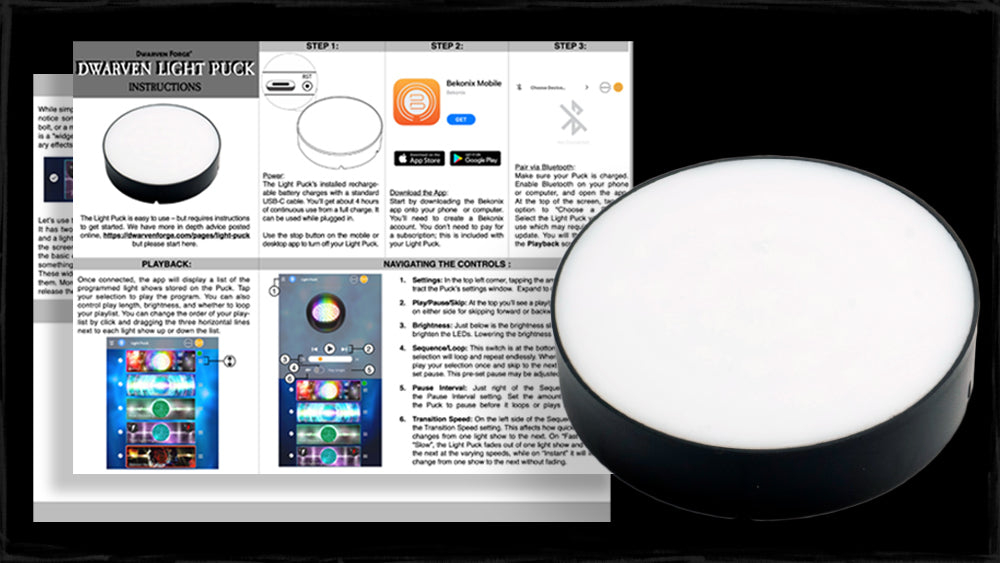 Pair your light shows with different phantasmal filter covers for a multitude of effects and styles. Learn more about how you can fit the Light Puck in these pieces and to bring an extra storytelling element onto your game table with our Getting Started with The Light Puck video below.