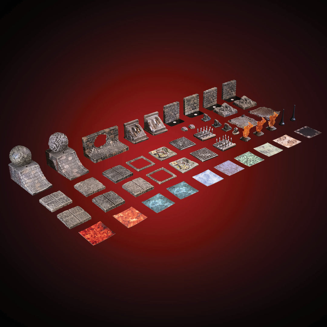 Floors are sculpted with a 1” grid, ideal for most TTRPGs.