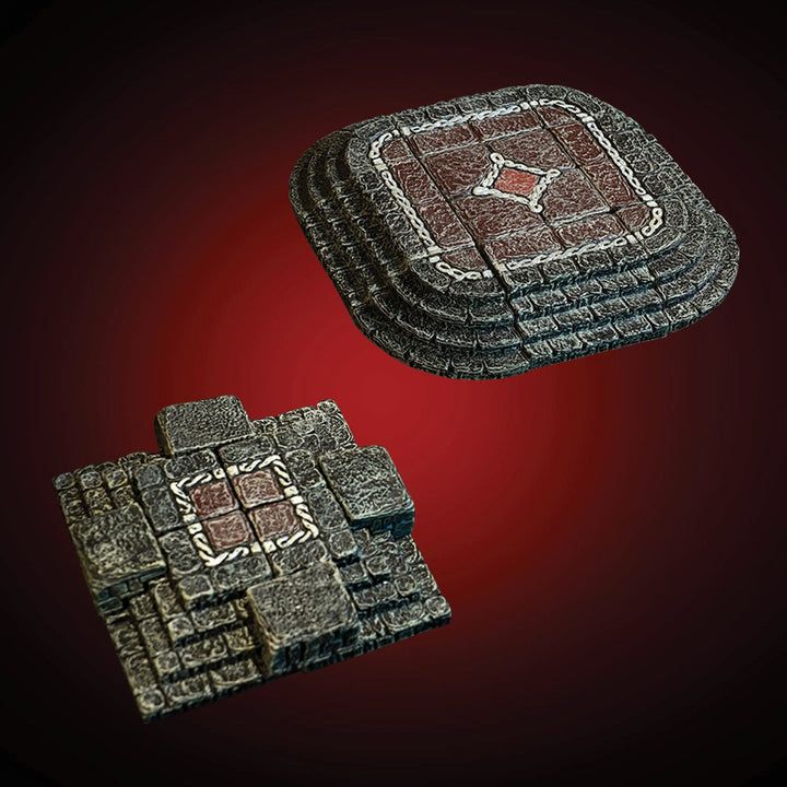 Daises are ideal as focal points in a room, and introduce some elevation to your scenes. This set can build two stand-alone daises, or can be reconfigured into a variety of platforms or even stairs. A great entry point into our versatile Dais system. Combines well with any of our other Dais or Elevation sets, and dressing sets like the Pillar Assortment.