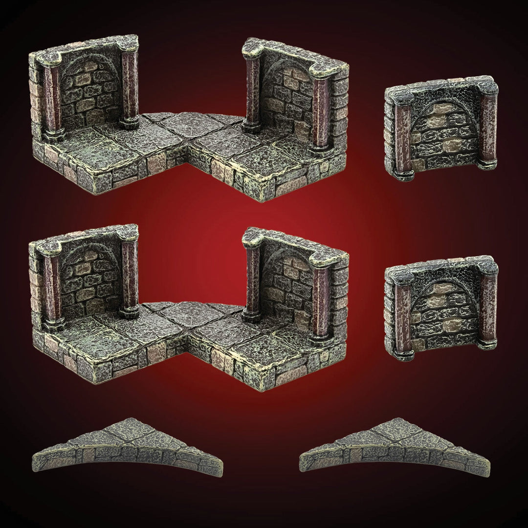 Combines well with large pieces, like Large Dungeon Floors or Large Curved Walls, for creating impressive chambers. Also pairs well with the Necromancer's Throne Room and any Dais sets as the finishing touches in a throne room.