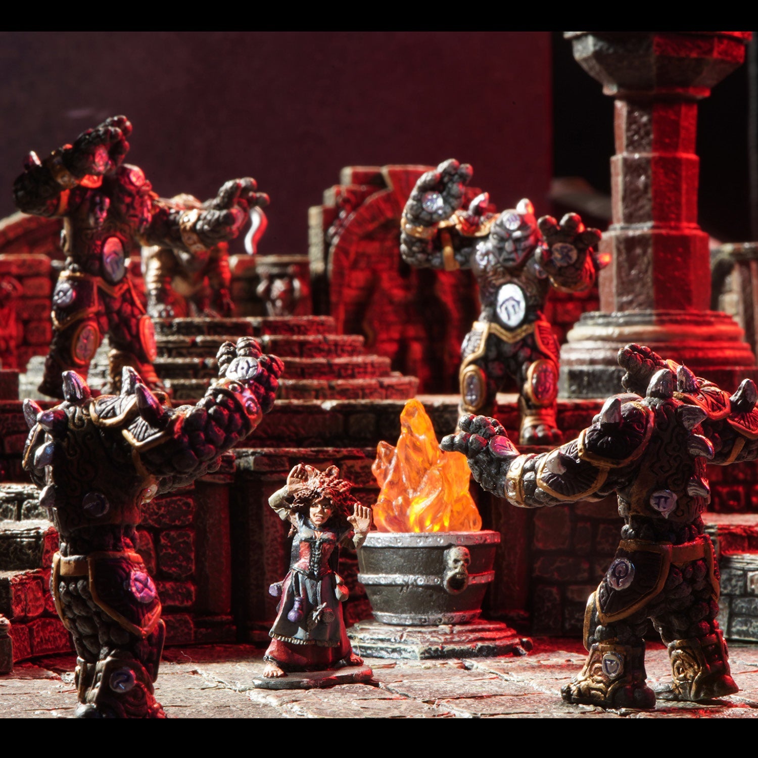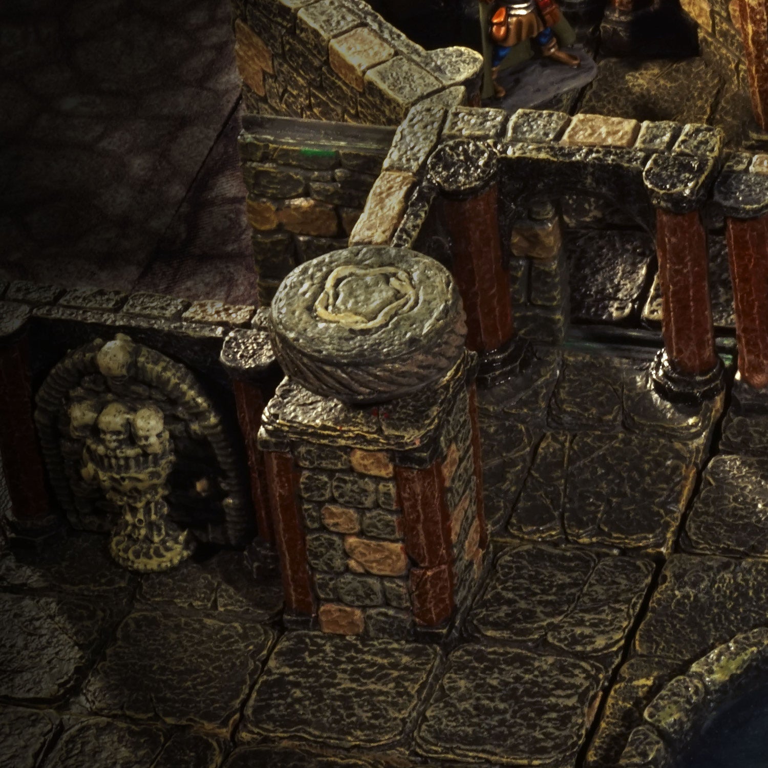 A line-up of previously hard-to-get fan-favorite pieces, everything in this set can be a narrative hooks, a potential enemies, part of an arcane puzzle, or just some killer décor. The inert Constructs fit seamlessly into the walls to await activation. Once animated remove them and swap in the active sculpts to battle the PCs. Or use the walls empty to make your players wonder what created the huge humanoid imprints. The Gorgons make wonderful statues when not used as monsters. Finally the Savage Gargoyles add instant Ravenloft vibes perched on the Elevation Pillars, your dungeon walls, or even placed on the floor.