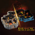 Since most Hellscape pieces are translucent, you can illuminate them from below with our DF Light Panels. This version doesn’t come with light panels; if you want them, check out the illuminated version here. You'll need four panels to illuminate all the pieces in this bundle at once.