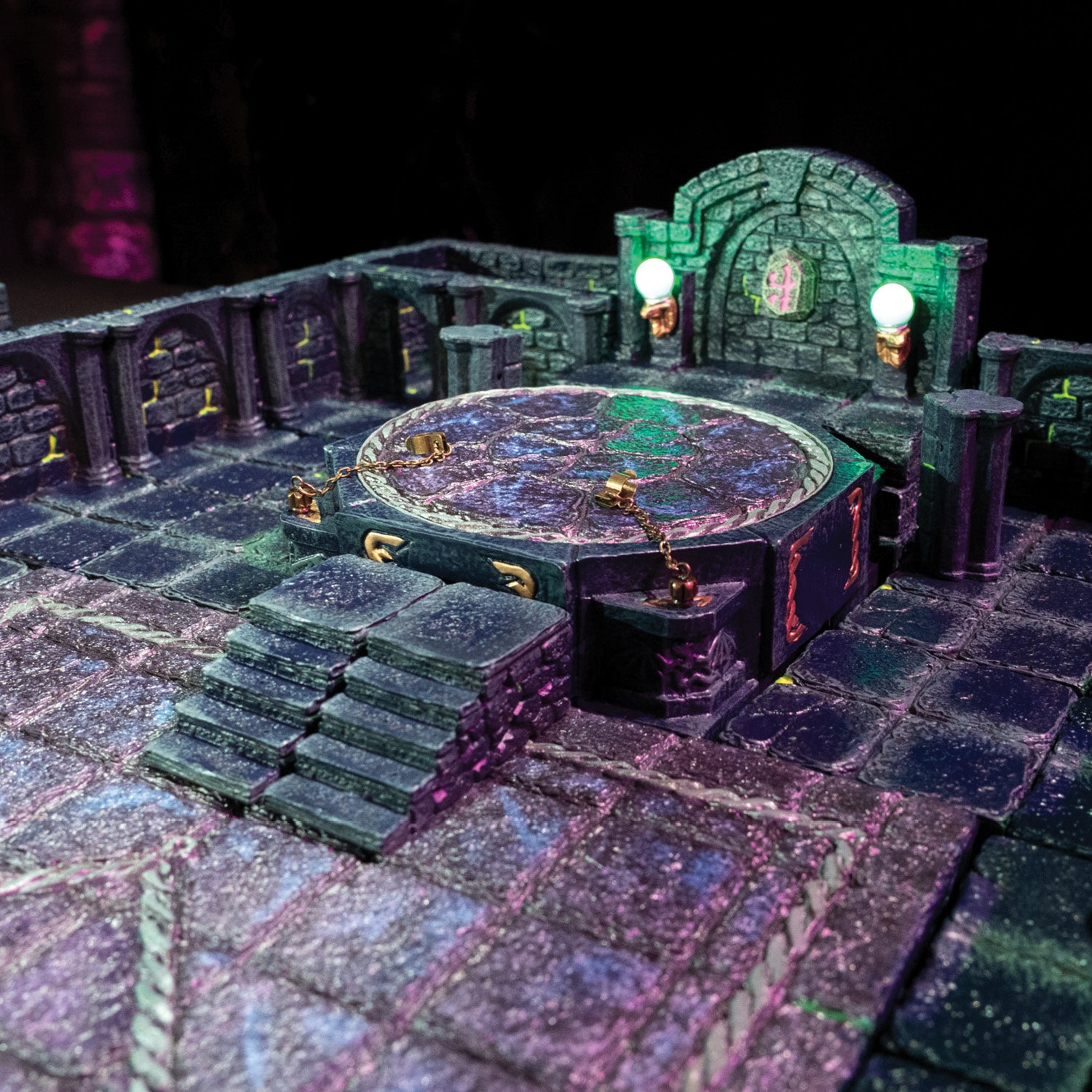 If you want the full range of our Vaulted Dungeons collection with a bundle discount, this is the set for you. It starts with a base of four Core Sets, and then adds nine Add-On sets to expand your building options. If that wasn't enough, it tops it off with the Large Curved Walls, a set of Magnetic Traps, and the new Dread Pedestal to ensure that you have some points of interest in your build. With an amazing mix of Core pieces, Passages, and doors, plus flashy LED pieces and magnetic accessories, this huge toolbox gives you everything you need to build endless dungeons in the Vaulted style.
