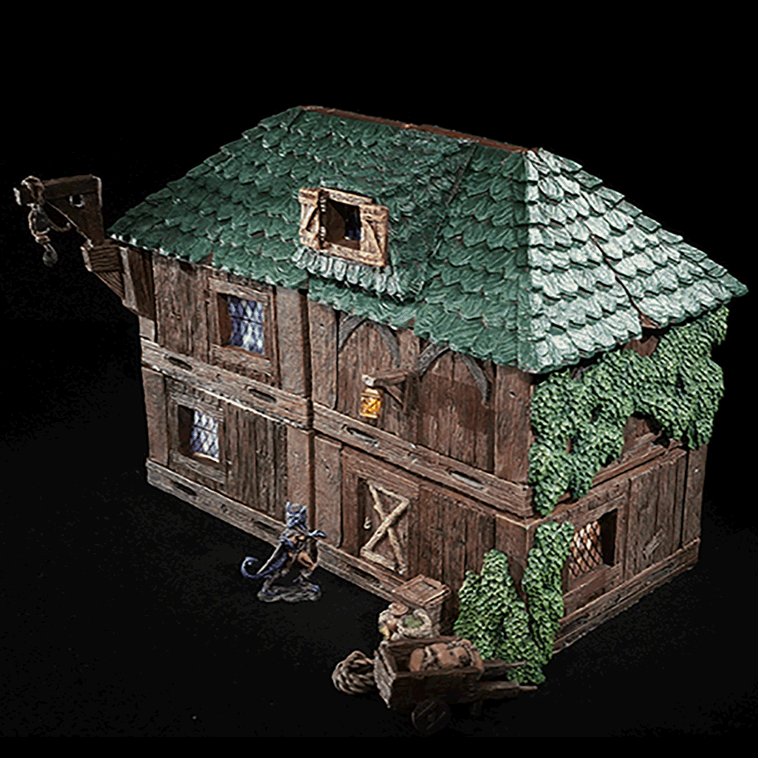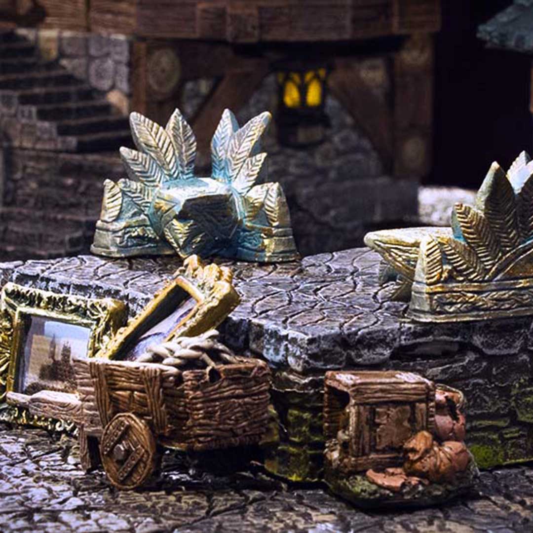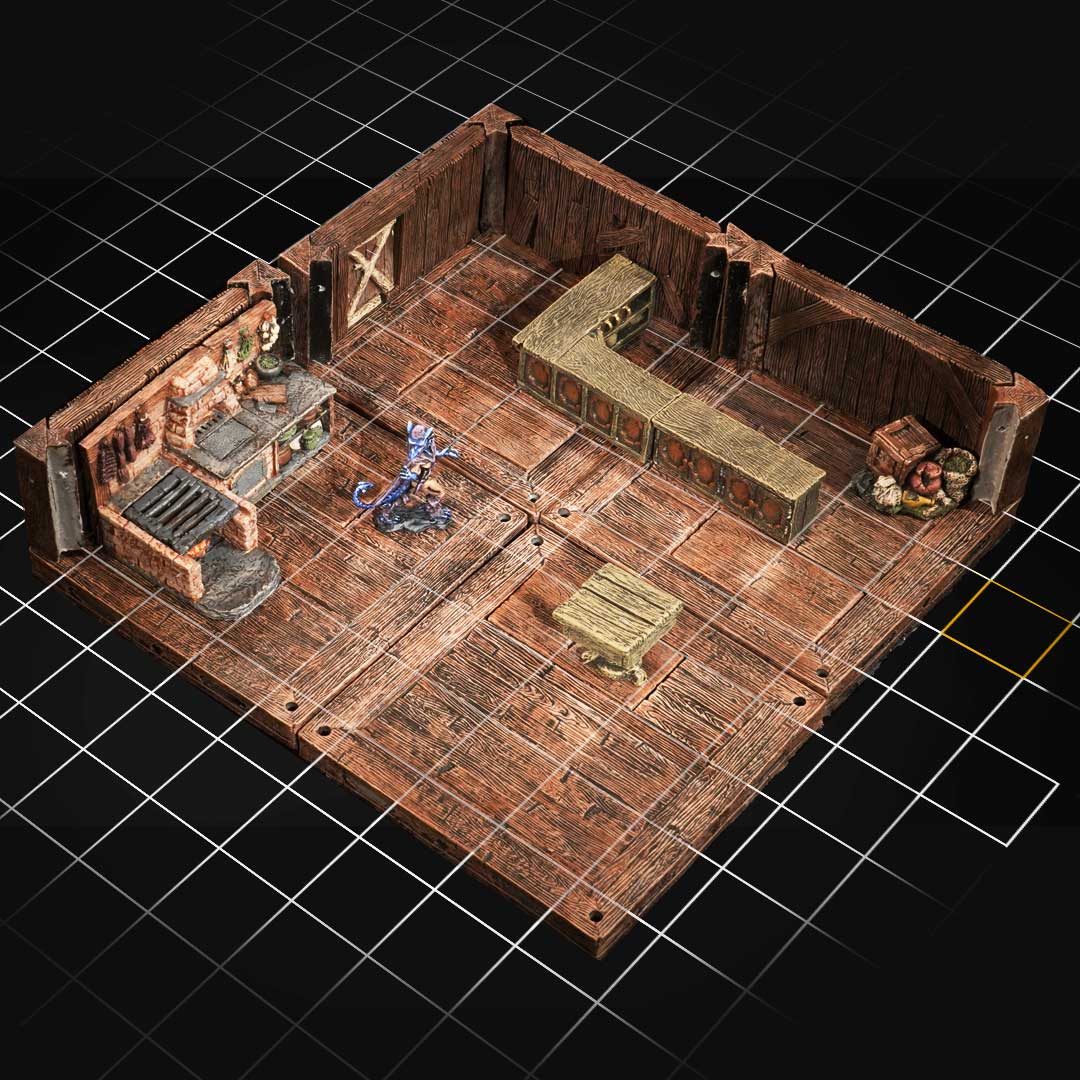 Floors are sculpted with a 1” grid, ideal for most TTRPGs.