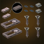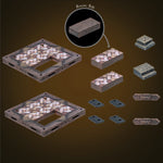 Grand guild houses, various shops, and humble booths scatter this hub of commerce. Build on top of the new Sculpted Battleboards for an easy scatter-like arrangment in a 2' x 2' footprint. This bundle features sets that include parquet wood floors, cobblestone elevation, freestanding market stalls, the dangle room with a specialty roof to go on top, LED lampposts, and more.