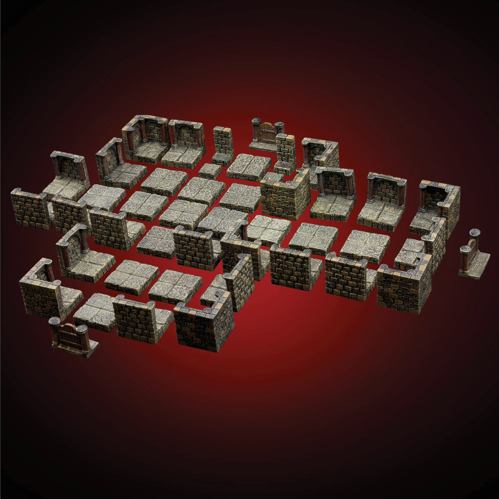 Floors are sculpted with a 1” grid, ideal for most TTRPGs.