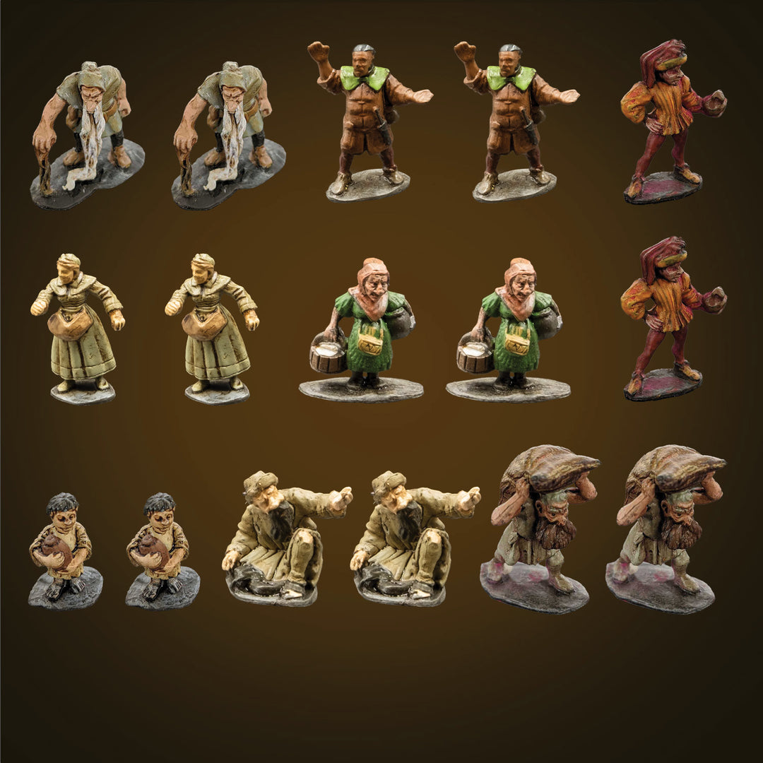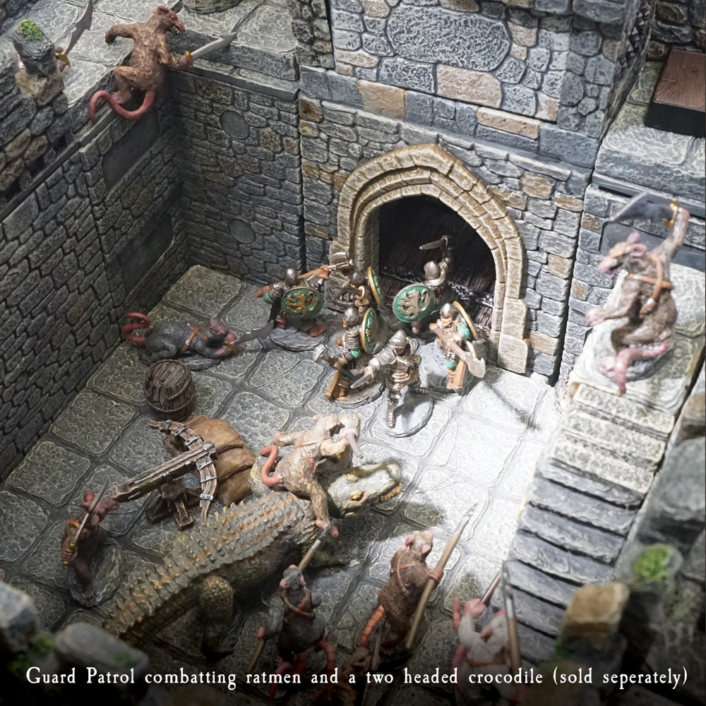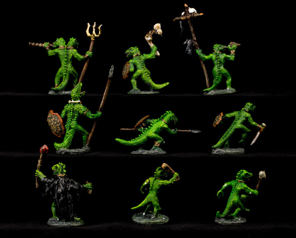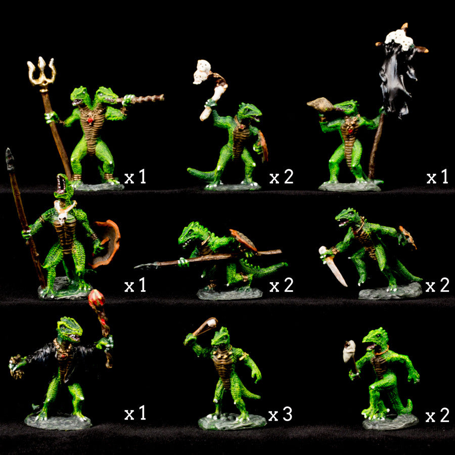 Our 28mm scale miniatures are available pre-painted and and ready to populate your world. Ranging from plain townsfolk, and simple kobolds, to a three-legged mimic and Sysuul the snake-goddess herself!