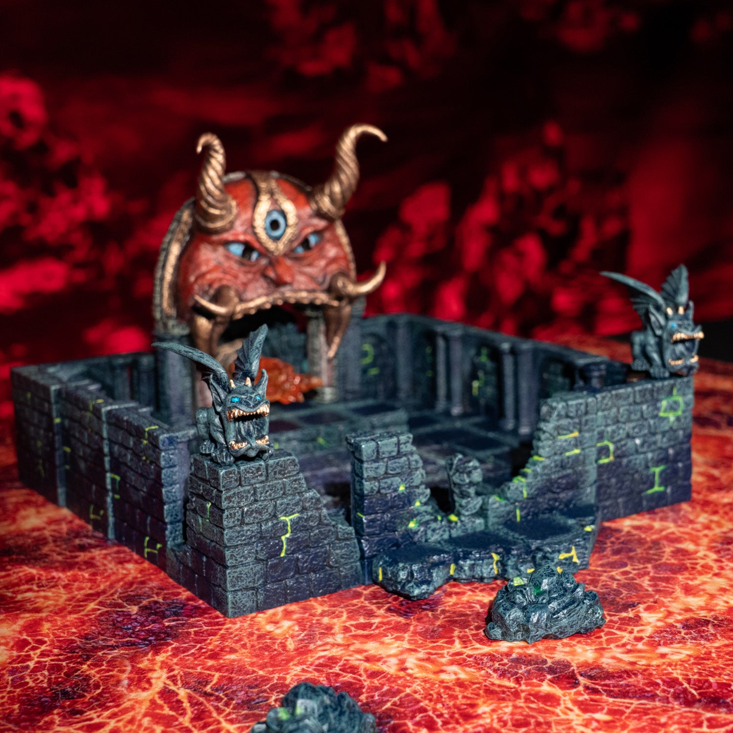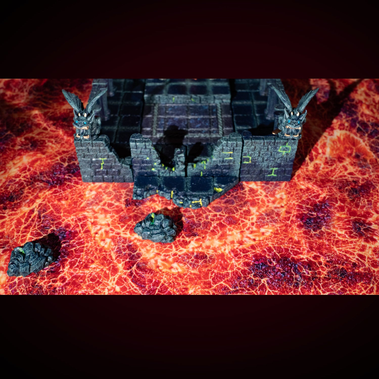 A two foot square, roll-up mat perfect for expansive negative space builds and gives fantastic coverage for the price. The graphic features a huge magma pool, and the surface of the mat has a rippled texture that catches the light creating the illusion of real liquid. The graphic is designed to work with the Magma Pool and Magma Mouth Terrain Trays, so you can create a magma river feeding into a huge pool of lava. The graphic is gridless so you can enjoy the artistry without interruption.