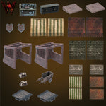 A simple hamlet is the unwitting battlefield of a major skirmish. A perfect combination of full structures and scatter pieces, easily go from a close-knit 3' x 3' skirmish build to a wider 4' x 4' army build. This bundle features sets that include elevated arches, scaffolding, options for both wood and fieldstone, exterior dressing and scatter, and more.