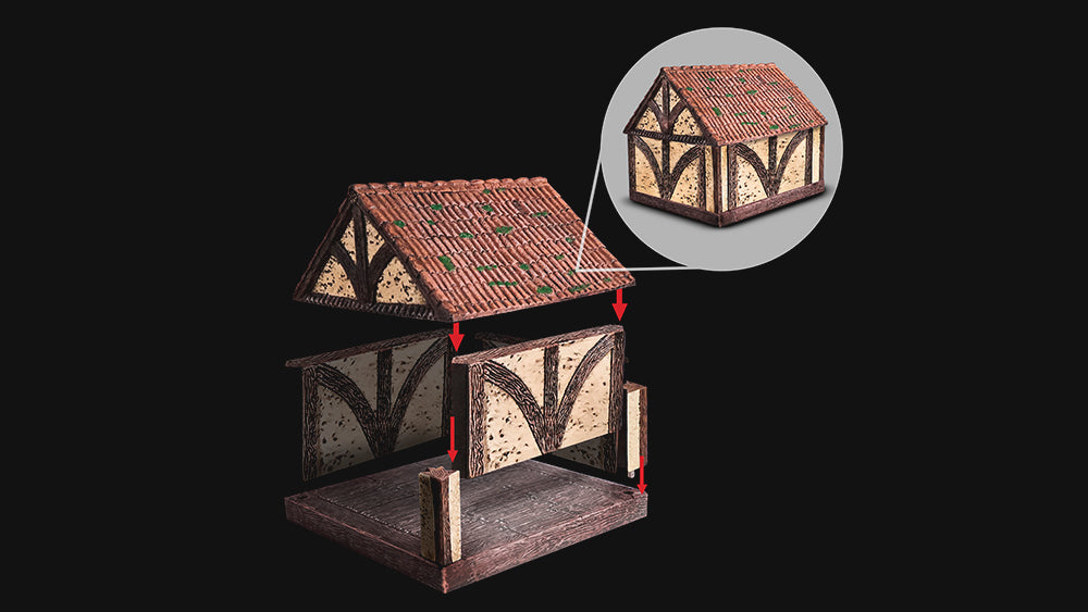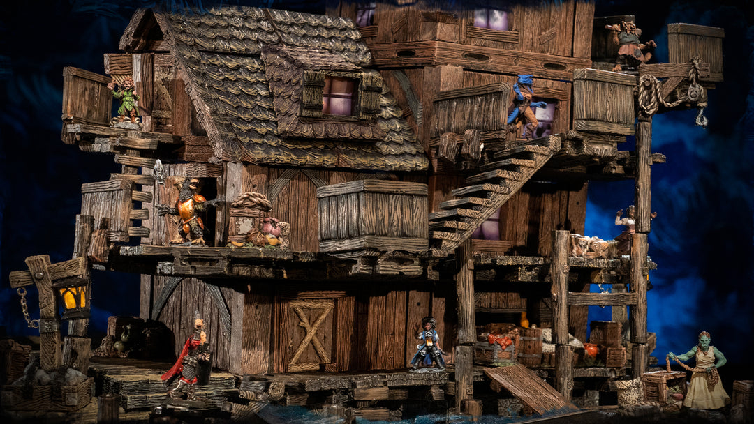 Our Cities collection is fully playable inside and outside, so you can have a tavern brawl spill out onto the street, chase a thief across the rooftops, or infiltrate a warehouse from the surrounding alleys. Whether you’re creating an inn for your RPG or a cluster of cottages for your skirmish, the same pieces can build both.
