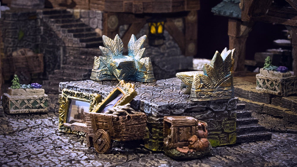 It’s the little details that truly bring an environment to life, and we have no shortage of dressing for both interiors and exteriors. You can find themed packs for making taverns, the town bazaar, or a royal library. Many of our accessories feature embedded LEDs to create immersive flickering fires.