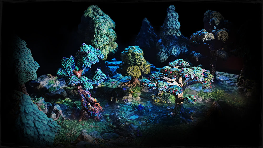 Builds quickly with countless combinations for dense groves or open glades when used with modular trees.