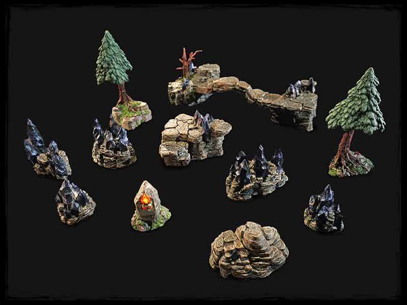 Each Wildlands biome integrates perfectly with the others, as well as all our previous Dwarven Forge terrain and our expanded line of Surface Layer Scenery to create the most dimensional, jaw dropping and cost effective builds ever. There are sets to suit nearly any story on every size of game table.