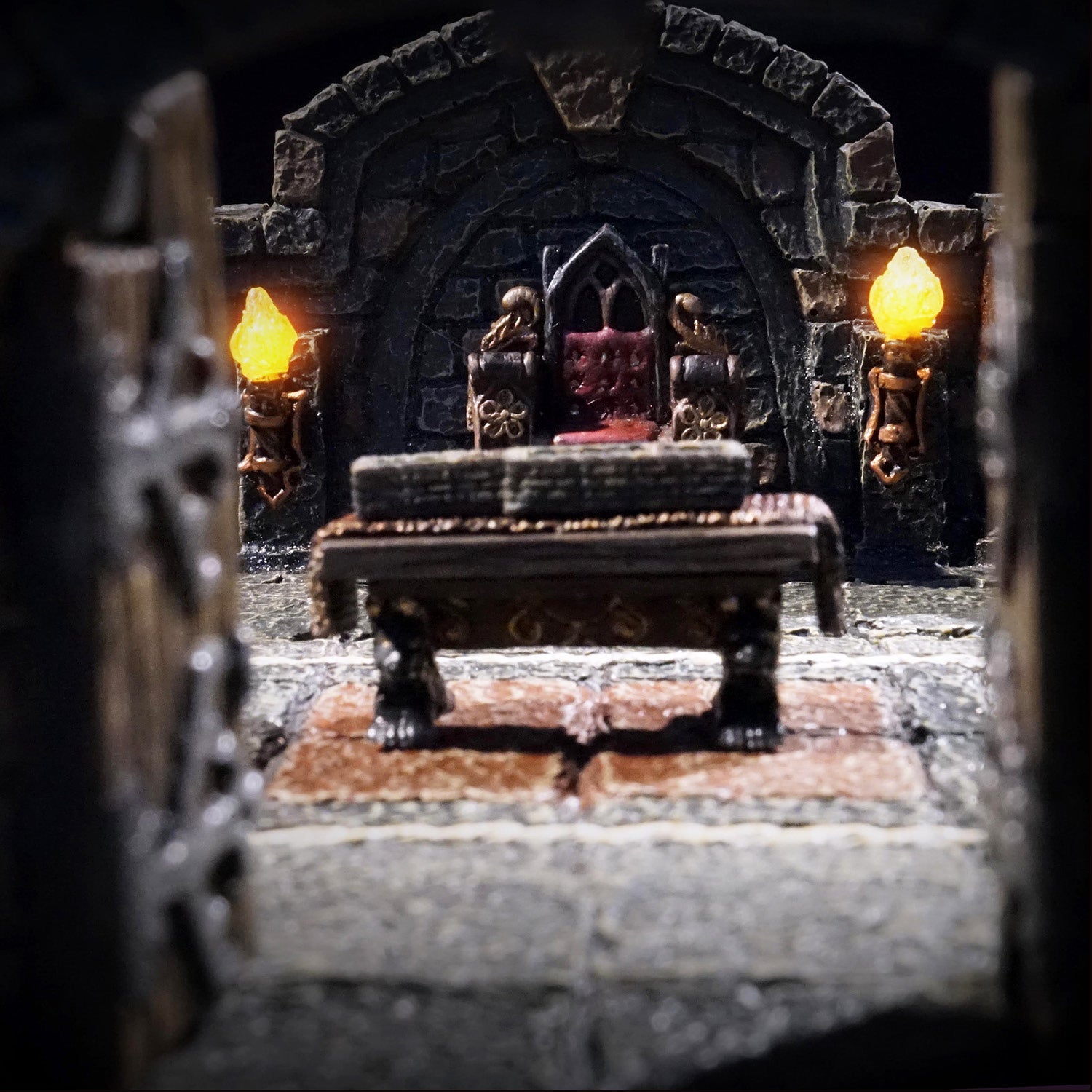 The perfect place to start a collection of dressing, this set offers the most common dungeon dressing used in most encounters. With some tables and chairs as trappings of habitation, a fine table and throne for a boss room, weapon racks and treasure to motivate greedy players, and a miniature dungeon so your monsters have something to do while waiting for the heroes to arrive. Even outside a d...