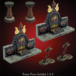 As built, the Snake's Den starts your players in a simple stone room—it could be the basement at a tavern, a hidden chamber in a cave, or anything else you can think of. Though it looks unremarkable at first, the Freestanding Forsaken Walls are secret entrances that they must solve a puzzle to clear. One leads to a small side room where you can place treasure, a captive, or any number of things. The other leads into the Snake's Den itself, with a sacrificial pit and then Sysuul's Altar in the final room!